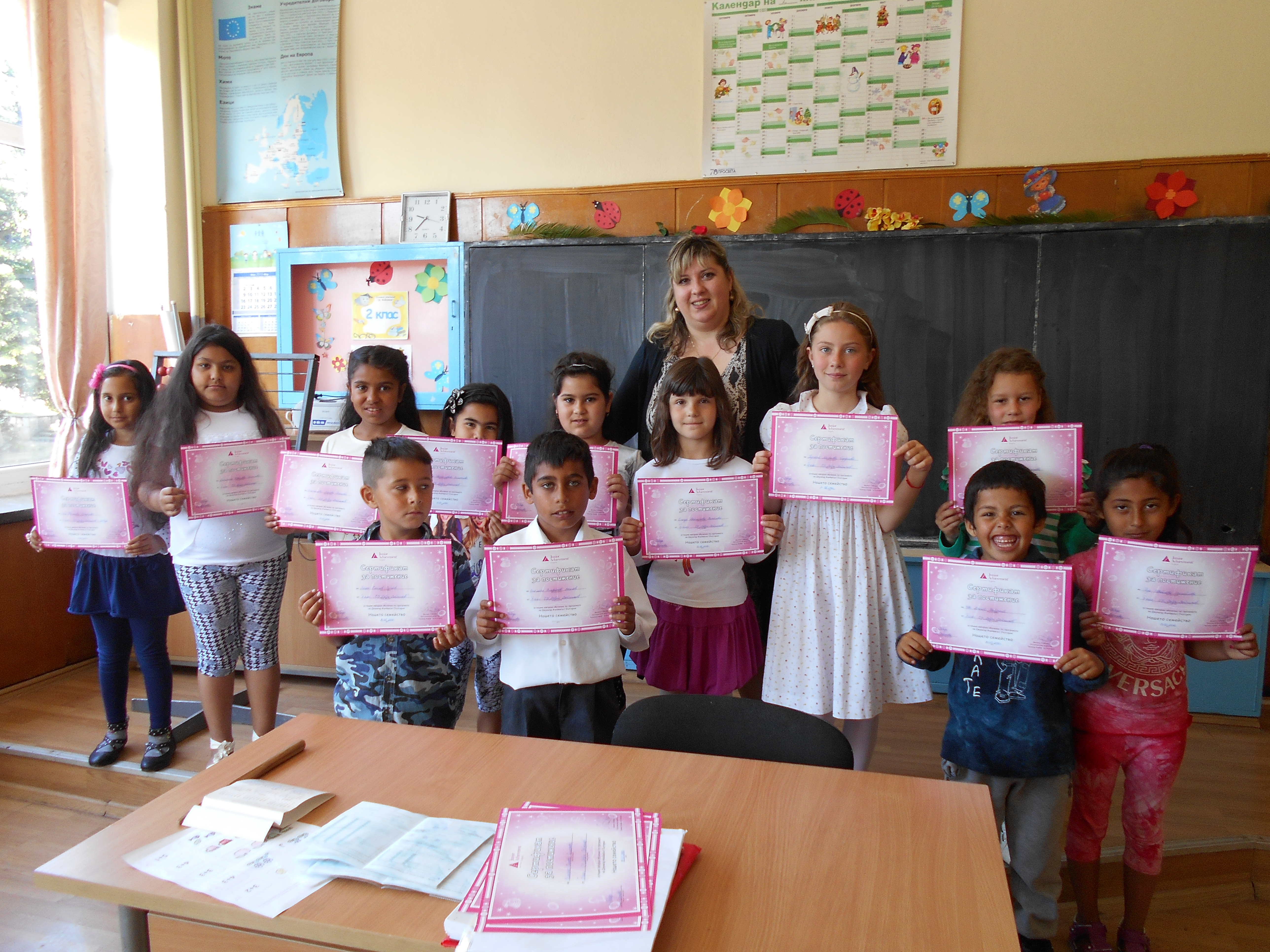 Училището ни получи грамота за цялостно представяне и подарък картина, грамота за отлично представяне на ІІІ клас с приказката „Приятелчета“.